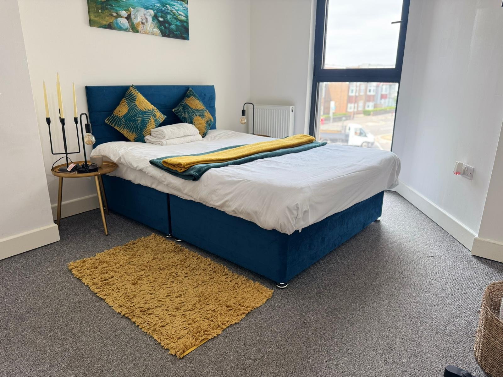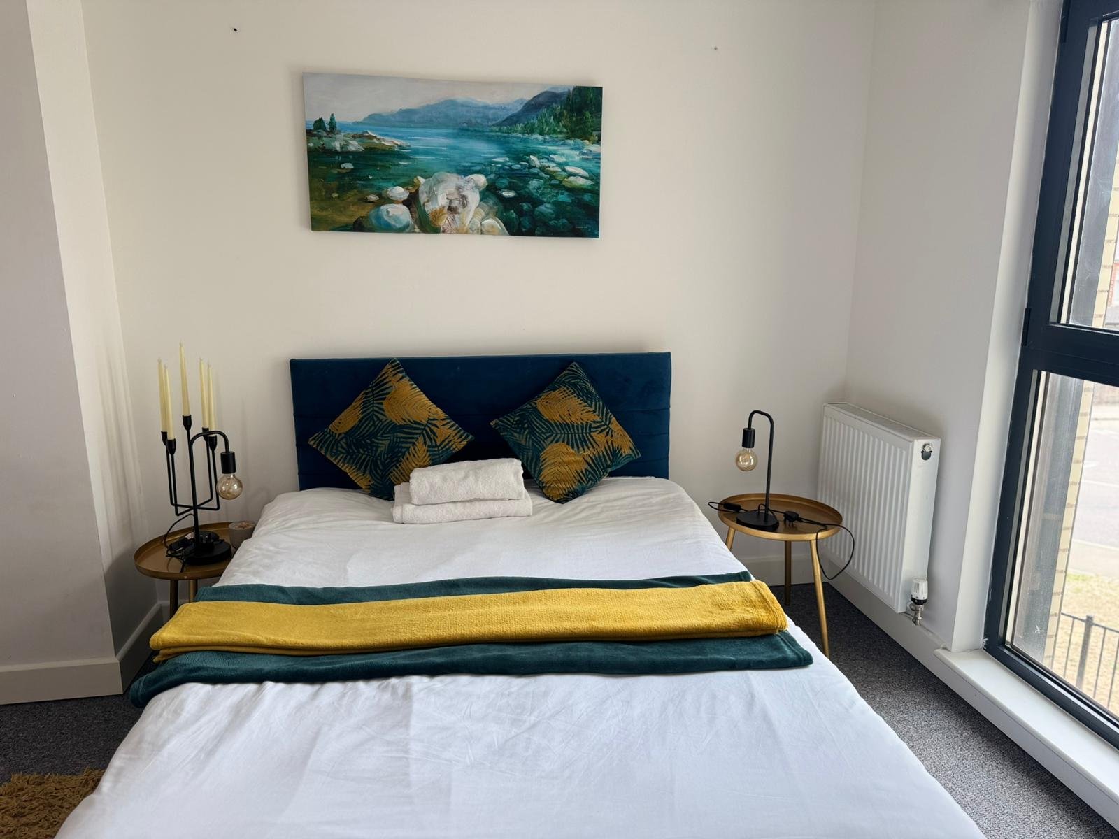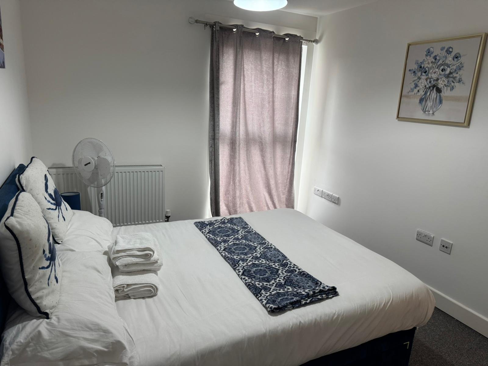 Heatrow Central Suites in Colnbrook offers a spacious, recently renovated apartment with one bedroom and two bathrooms. The living room features a sofa bed and a dining area, providing ample space for relaxation and entertainment.